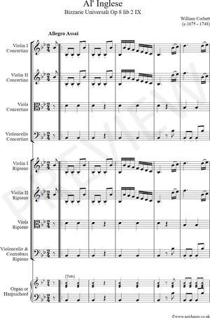 Corbett described the concertos as "also contrived for Violins, German-flutes or Hautboys". A trio sonata version is also offered, based on the concertino instruments with continuo.